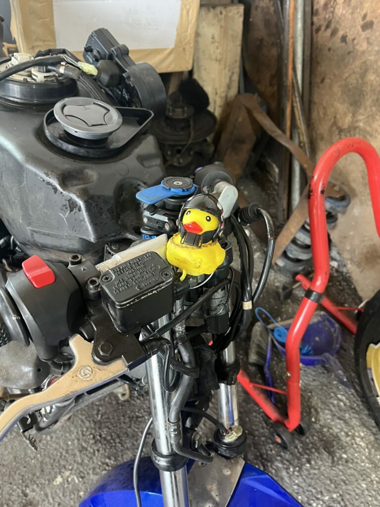 Gerald the duck stayed on after a major crash glad he had his helmet on